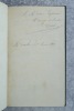 CAEN. F. LEBLANC-HARDEL, IMPRIMEUR-LIBRAIRE. 1866. PETIT IN-8 (14 X 22,5 X 2 CENTIMETRES ENVIRON) DE IV + 184 ET (1) PAGES, RELIURE MODERNE 1/2 VEAU ROUGE, DOS A QUATRE NERFS ORNE D’UN FLEURON DORE, TITRE DORE, COUVERTURE IMPRIMEE CONSERVEE. ENVOI D'AUTEUR SIGNE : «A MON CHER AMI V. LARTIGUE, CHEF DE BUREU AU MINISTERE DES TRAVAUX PUBLICS, SOUVENIR AFFECTUEUX. DEVALS AINE. MONTAUBAN, LE 1° JANVIER 1867». BEL EXEMPLAIRE.