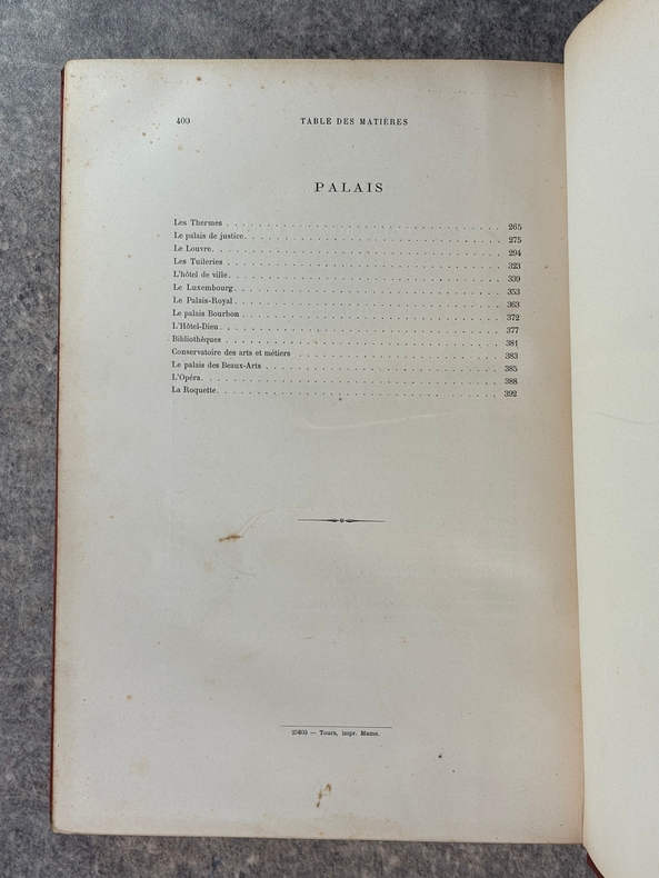 TOURS. MAME. 1895. IN-8 DE 500 PAGES, RELIURE DE L' EDITEUR PLEINE PERCALINE ROUGE ORNEE D' UNE COMPOSITION EN NOIR ET DORE AUX ARMES DE LA VILLE DE PARIS, TITRE ET TRANCHES DORES. ILLUSTRE DE 8 PLANCHES HORS-TEXTE PAR GIRARDET ET ROUARGUE ET DE NOMBREUSES VIGNETTES IN ET HORS-TEXTE. EX-LIBRIS "AUX DEUX BARS ADOSSÉS" DE LA FAMILLE DE MARLIAVE. PETITS DEFAUTS EXTERIEURS SANS GRAVITE, SINON BON EXEMPLAIRE.