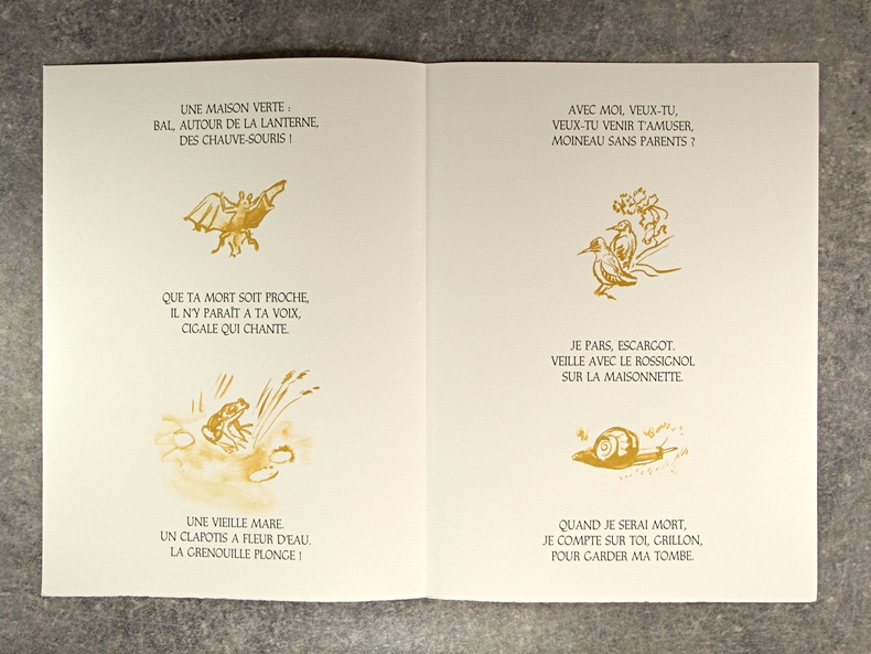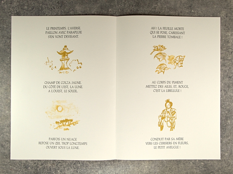 BIEVRES-EN-ESSONNE. PIERRE ET PHILIPPE DE TARTAS. 1987. GRAND IN-4 EN FEUILLES (30 X 40,5 X 5,5 CENTIMETRES ENVIRON) NON PAGINE, COUVERTURE ILLUSTREE EN COULEURS, SOUS EMBOITAGE PERCALINE NOIRE AVEC FENETRE SUR LE PLAT SUPERIEUR ORNEE D'UN PORTIQUE JAPONAIS DORE ESTAMPE EN RELIEF SUR FOND ROUGE. ILLUSTRE DE TRES NOMBREUSES LITHOGRAPHIES EN COULEURS, DONT LA COUVERTURE ET 12 PLANCHES DOUBLES HORS TEXTE. PREMIER TIRAGE LIMITE A 527 EXEMPLAIRES NUMEROTES. UN DES 350 SUR VELIN D’ARCHES, CELUI-CI PORTANT LE NUMERO 262 ET COMPORTANT L'ETAT DEFINITIF DES ILLUSTRATIONS, SIGNE PAR L'EDITEUR ET L'ARTISTE ET VISE PAR MINISTERE D'HUISSIER. BEL EXEMPLAIRE.