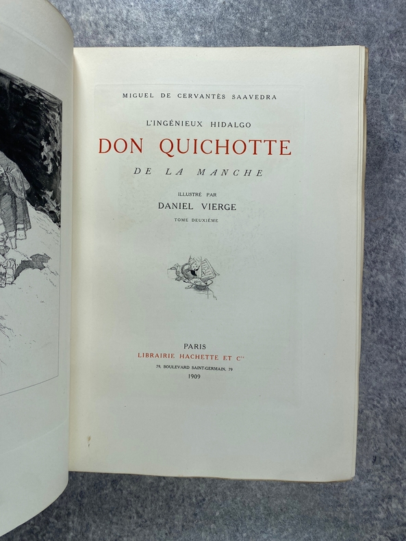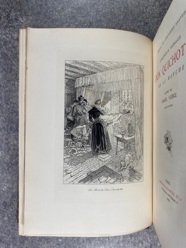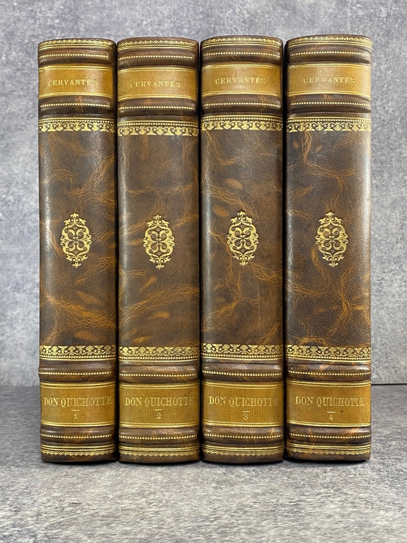 PARIS. HACHETTE. 1909. 4 FORTS VOLUMES IN-4 (22 X 29 X 23 CENTIMETRES ENVIRON) DE (4) + 375, (4) + 399, (4) + 417 ET (4) + 425 PAGES, RELIURE D’EPOQUE 1/2 VEAU MARBRE SOULIGNEE D’UNE DENTELLE DOREE, DOS A 4 FORTS NERFS ORNE D’UN FLEURON ET DE DENTELLE DORES, TITRE DORE SUR ETIQUETTE MAROQUIN HAVANE, COUVERTURE CONSERVEE. ILLUSTRE DE 260 COMPOSITIONS TIREES EN TAILLE-DOUCE DONT 101 PLANCHES HORS TEXTE. TIRAGE LIMITE A 350 EXEMPLAIRES NUMEROTES. UN DES 340 SUR PAPIER VELIN, CELUI-CI PORTANT LE NUMERO 230. «EDITION COTEE» (CARTERET. IV. 94). «MAGNIFICA EDICION» (MENAGES Y FONBUENA. 726). BEL EXEMPLAIRE DE CET OUVRAGE RARE ET RECHERCHE POUR LES SUPERBES ILLUSTRATIONS DE DANIEL VIERGE.