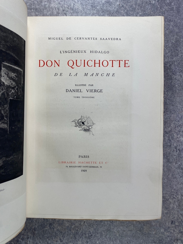 Michel de l'ormeraie 1976 in4. 1976. Relié. L'ingénieux Hidalgo Don Quichotte de la Manche + Pablo de Ségovie - illustré par Daniel Vierge - réédition de 1976 - tome 1 à 5 complet + Pablo de Ségovie en un volume --- ensemble numoté (fin du livre Pablo de Ségovie): n°347 tiré sur velin ivoire - reproduction des premiers tirages parus en 1909 et 1902