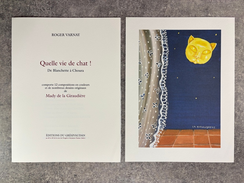 SEYSSINET-PARISET. EDITIONS DU GRESIVAUDAN. (1992). IN-4 EN FEUILLES (27 X 34 X 5,5 CENTIMETRES ENVIRON) DE 196 PAGES, SOUS EMBOITAGE IMITATION BOIS A FENETRE LAISSANT APPARAITRE LA TETE DU CHAT DE LA COUVERTURE ILLUSTREE EN COULEURS, TITRE EN NOIR. AVEC UNE CHEMISE COMPRENANT DES FAC-SIMILES DE LETTRES ET POESIES CONSACREES AU CHAT PAR DIVERS AUTEURS ET ARTISTES PEINTRES. ILLUSTRE DE 12 PLANCHES EN COULEURS HORS-TEXTE ET DE NOMBREUX DESSINS EN NOIR. EDITION ORIGINALE ET PREMIER TIRAGE, LIMITE A 1200 EXEMPLAIRES NUMEROTES, TOUS SUR VELIN D'ARCHES, CELUI-CI PORTANT LE NUMERO 587. BEL EXEMPLAIRE.