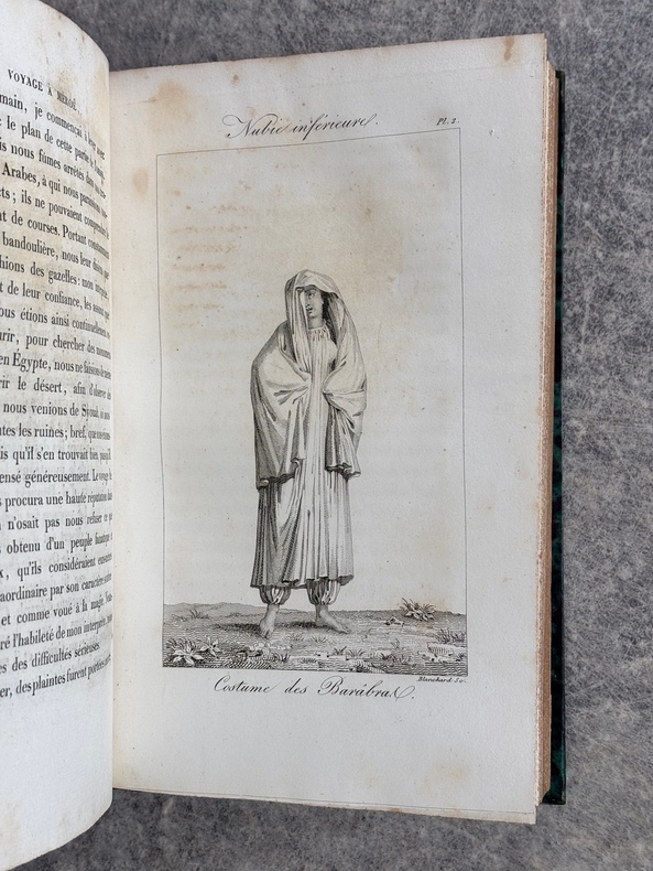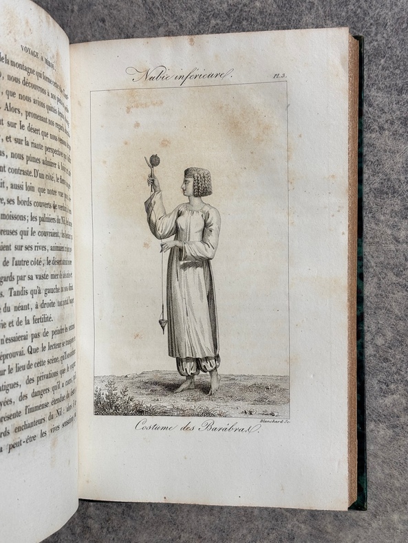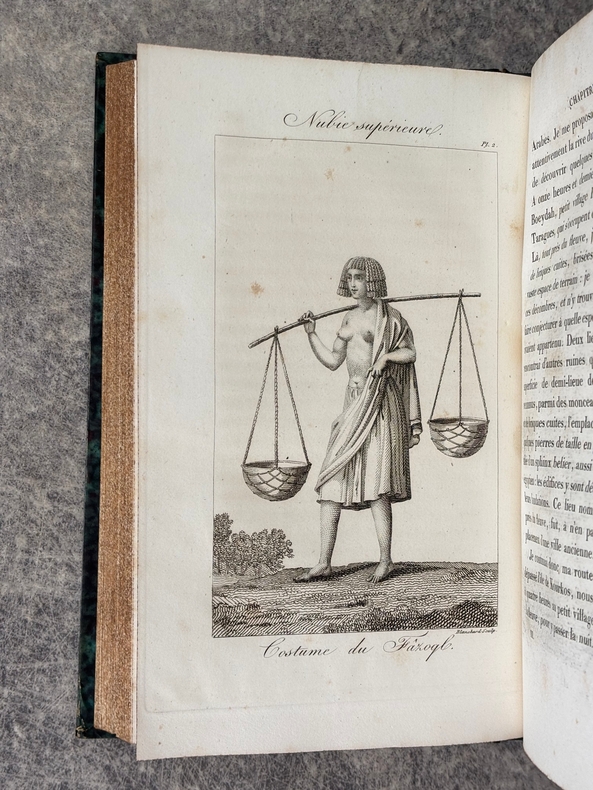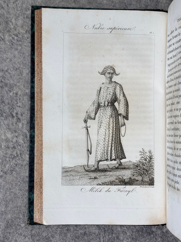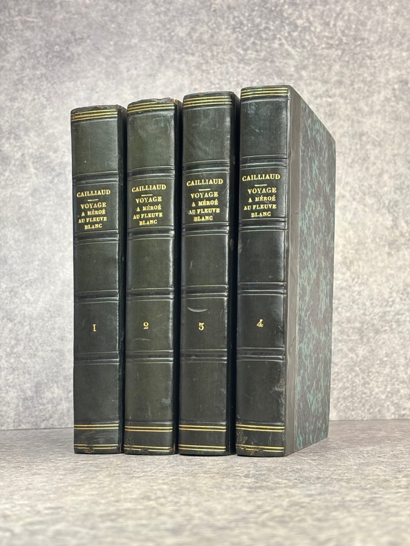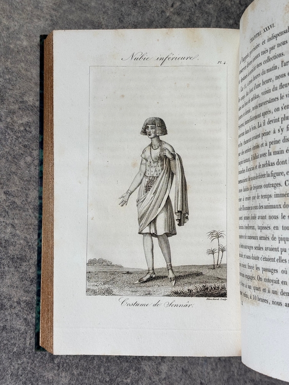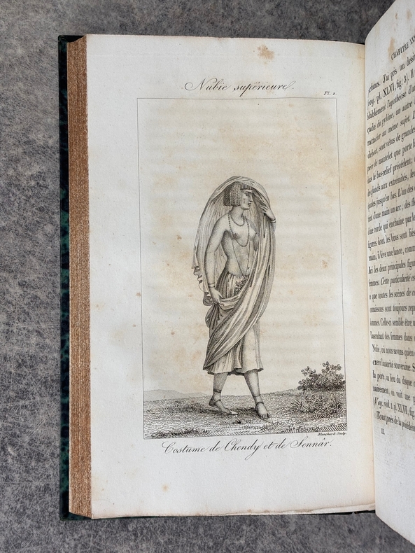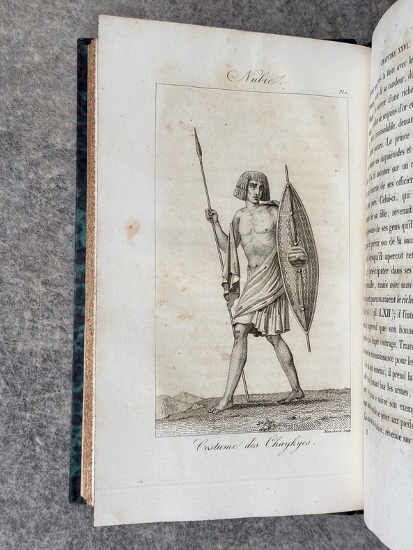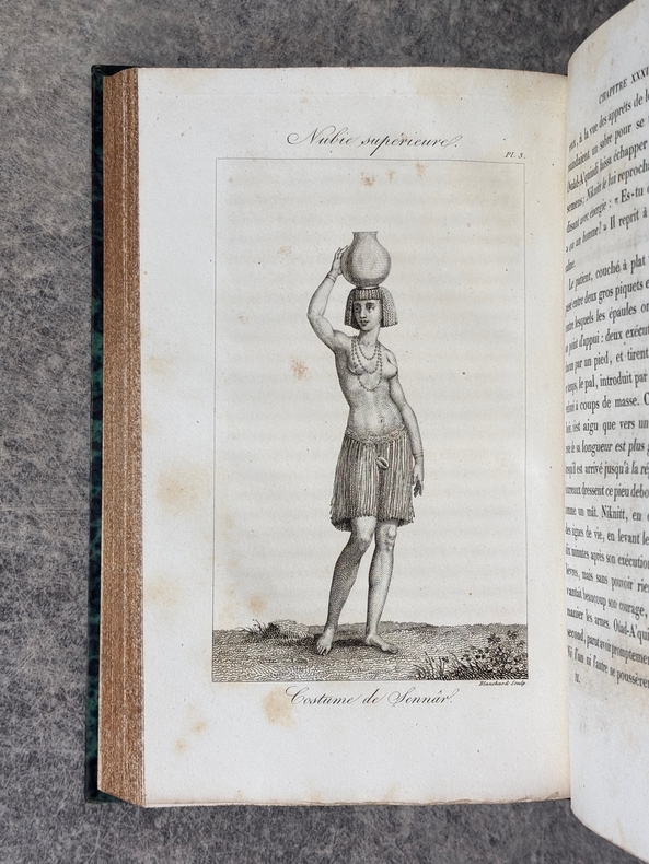 PARIS. A L’IMPRIMERIE ROYALE. 1826-1827. 4 VOLUMES IN-8 (13 X 21,5 X 13 CENTIMETRES ENVIRON) DE (4) + XV + 429, (4) + 442, (4) + 431 ET (4) + 416 PAGES, RELIURE D’EPOQUE 1/2 VEAU VERT, DOS LISSE ORNE DE FILETS DORES ET A FROID, TITRE DORE. ILLUSTRE DE 15 PLANCHES HORS TEXTE, 12 DE COSTUMES ET 3 D’INSCRIPTIONS ARCHEOLOGIQUES. EDITION ORIGINALE PEU COURANTE. QUELQUES PETITS DEFAUTS EXTERIEURS ET PETITES TRACES DE FROTTEMENT AUX DOS, SINON BEL EXEMPLAIRE.