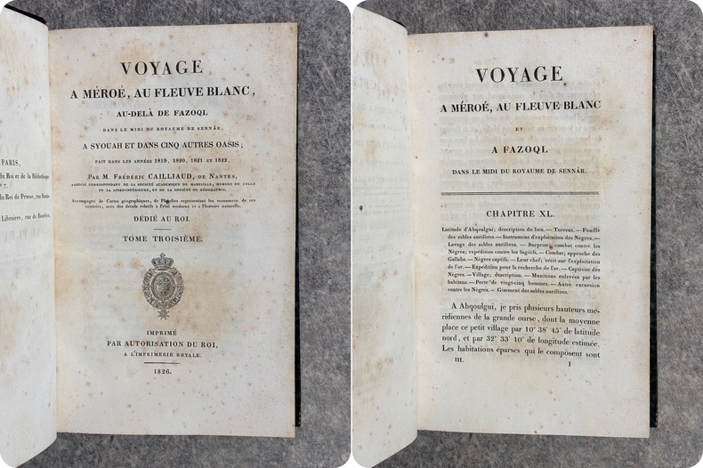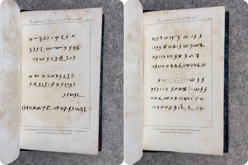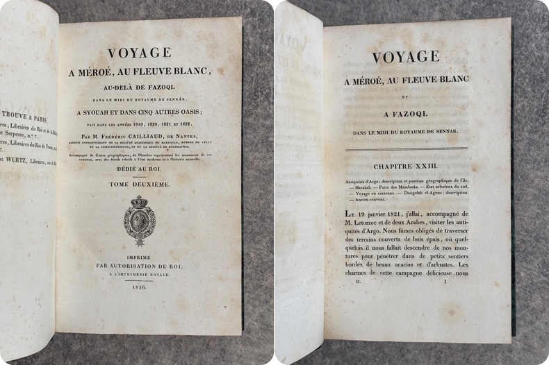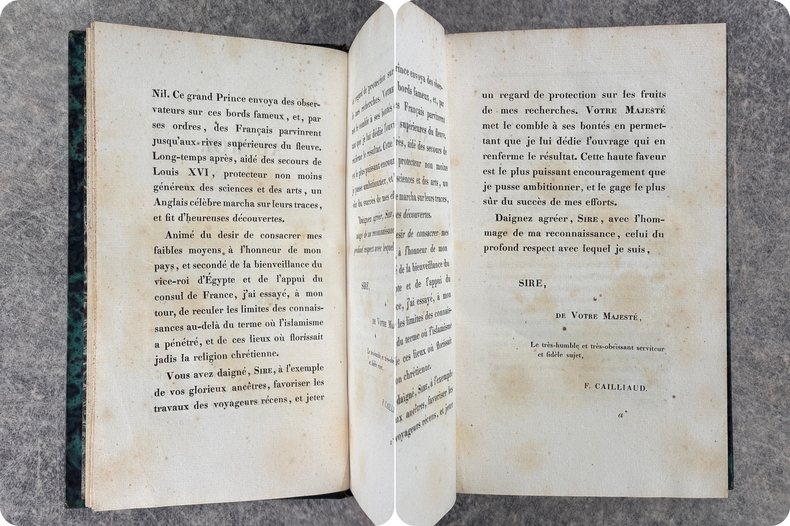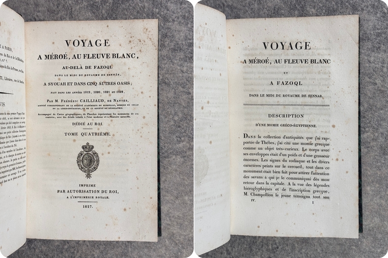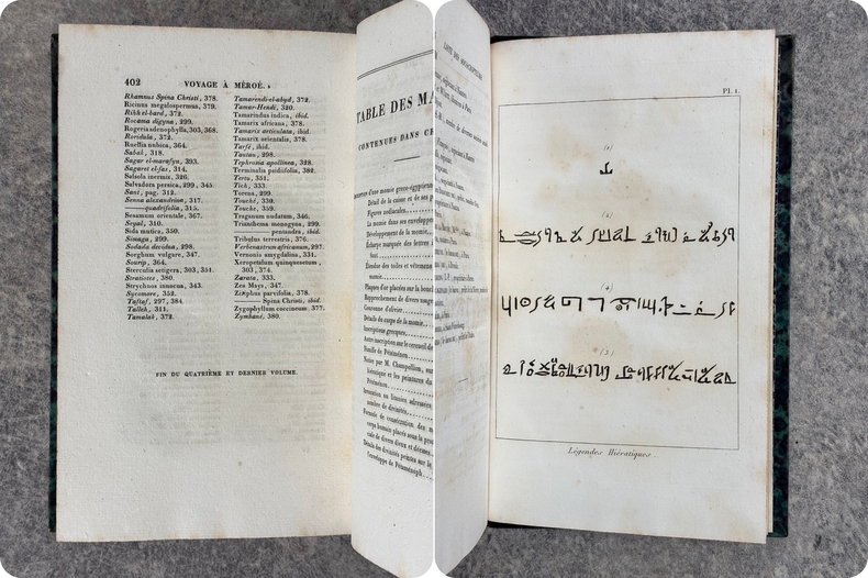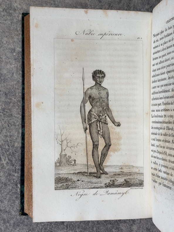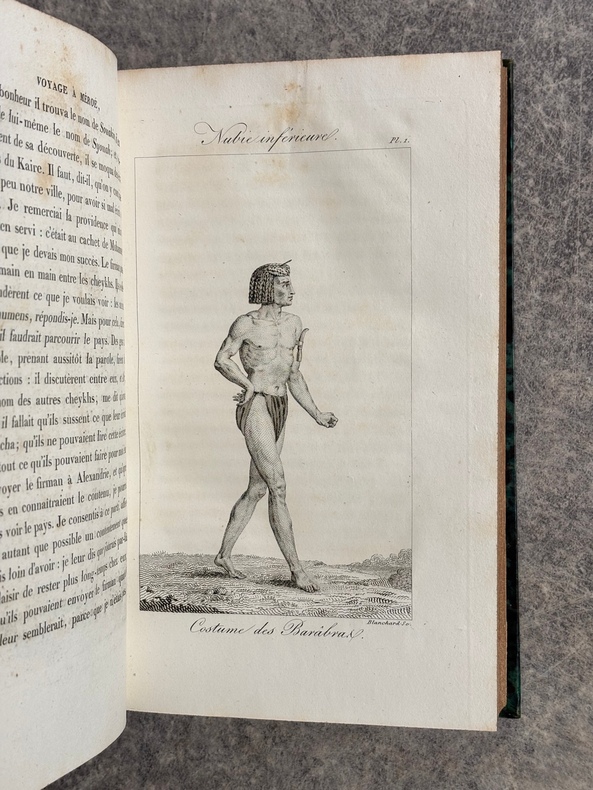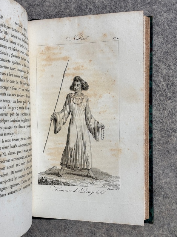 PARIS. A L’IMPRIMERIE ROYALE. 1826-1827. 4 VOLUMES IN-8 (13 X 21,5 X 13 CENTIMETRES ENVIRON) DE (4) + XV + 429, (4) + 442, (4) + 431 ET (4) + 416 PAGES, RELIURE D’EPOQUE 1/2 VEAU VERT, DOS LISSE ORNE DE FILETS DORES ET A FROID, TITRE DORE. ILLUSTRE DE 15 PLANCHES HORS TEXTE, 12 DE COSTUMES ET 3 D’INSCRIPTIONS ARCHEOLOGIQUES. EDITION ORIGINALE PEU COURANTE. QUELQUES PETITS DEFAUTS EXTERIEURS ET PETITES TRACES DE FROTTEMENT AUX DOS, SINON BEL EXEMPLAIRE.