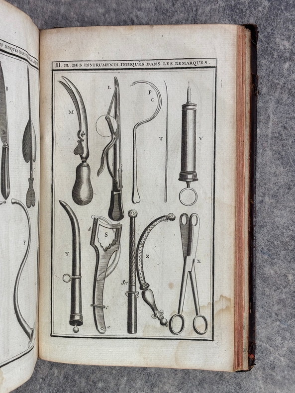 PARIS. VEUVE D'HOURY. 1765. IN-8 DE XXXII + 920 PAGES EN 2 VOLUMES (13 X 20 CENTIMETRES ENVIRON) RELIURE D'EPOQUE PLEIN VEAU MARBRE, DOS A CINQ NERFS ORNE DE CAISSONS A FLEURONS DORES, TITRE DORE SUR ETIQUETTE MAROQUIN ROUGE, TRANCHES ROUGES. ILLUSTRE DE 52 BOIS GRAVES DANS LE TEXTE ET DE 17 PLANCHES HORS TEXTE, DONT UN PORTRAIT, UNE PLANCHE REPRESENTANT UNE LECON D'ANATOMIE ET UNE VUE DU JARDIN ROYAL. QUELQUES DEFAUTS EXTERIEURS DONT PETITS MANQUES DE CUIR AU DOS DU SECOND VOLUME, SINON BON EXEMPLAIRE.