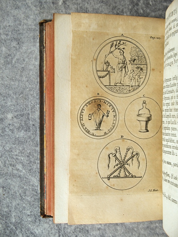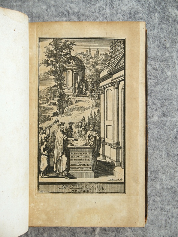 AMSTERDAM. JOHANNES OOSTERWYK. 1713. PETIT IN-8 (10,5 X 16 CENTIMETRES ENVIRON) DE (16) + 348 ET (2) PAGES, RELIURE D'EPOQUE PLEIN VEAU, DOS A CINQ NERFS ORNE DE CAISSONS A FLEURONS DORES, TITRE DORE SUR ETIQUETTE MAROQUIN ROUGE, TRANCHES ROUGES. ILLUSTRE D'UN TITRE-FRONTISPICE, D'UNE VIGNETTE DE TITRE, D'UN GRAND CUL-DE-LAMPE ET DE 11 PLANCHES HORS TEXTE GRAVES SUR ACIER PAR JACOB SCHYNVOET. COMPLETE PAR UN INDEX. PETITS DEFAUTS EXTERIEURS SANS GRAVITE, DONT PETITES FENTES SUR LES CHARNIERES, SINON BON EXEMPLAIRE.