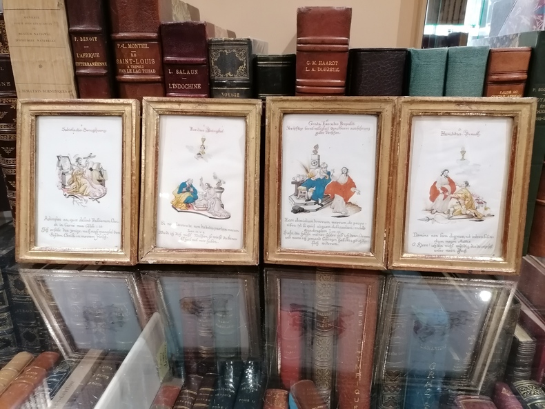 Cadre doré.représentation pleine de charme et de finesse,en latin et allemand.