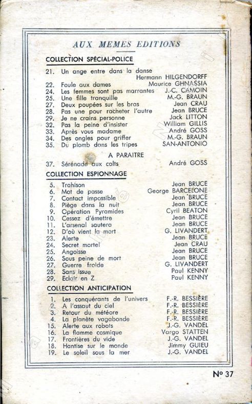 1953 Editions Fleuve Noir, collection "Spécial-Police" N° 37 - 1953 - Petit in-8, broché couverture illustrée par Michel Gourdon - 224 pages