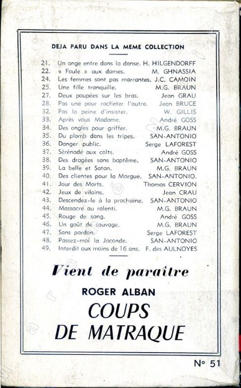 Editions Fleuve noir. Collection Police. Couverture faite par M. Gourdon. Edition originale. Classification Dewey : 843.0872-Le roman policier