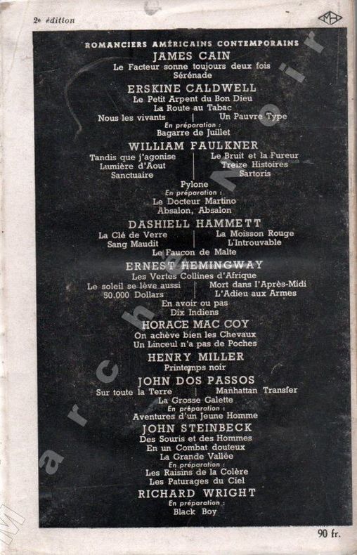 " Série noire " n° 4 / Gallimard (2 Septembre 1946) - In-12° broché de 240 pages - Traduit de l'anglais par Sabine Berritz et Marcel Duhamel - Exemplaire en très bon état non coupé