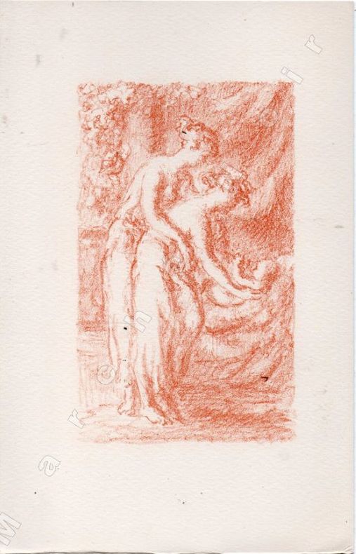 1944 Paris, Marcel Sautier, Editeur, 1944 ; in-8, en feuilles, couverture blanche rempliée avec titre en noir et vignette en sanguine au 1er plat , sous chemise et étui cartonnés bordeaux, dos de la chemise de toile rose pale avec titre et vignette en bordeaux ; XI-107-(1)pp.-(4) pp., titre imprimé en vert et noir et illustré d'une vignette en sanguine, titres des chapitres, initiales et pagination sont imprimés en vert tendre, bel exemplaire.