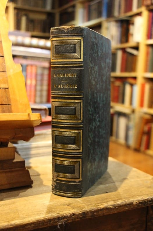 Paris, Furne et Cie, impr. H. Fournier et Cie, à Paris 1846 In-4 27 x 16,5 cm. Reliure éditeur demi-chagrin vert, dos à nerfs, caissons orné de cadres à froid, tranches dorées, IV-637 pp., frontispice gravé en noir et blanc, avec serpente. 35 planches sous sepentes dont 12 en couleurs d'uniformes de l’armée d’Afrique, 1 carte en couleurs de l’Algérie repliée in fine, table des chapitres. Coiffe de tête avec petits accrocs, rousseurs marginales, soutenues sur quelques pages,