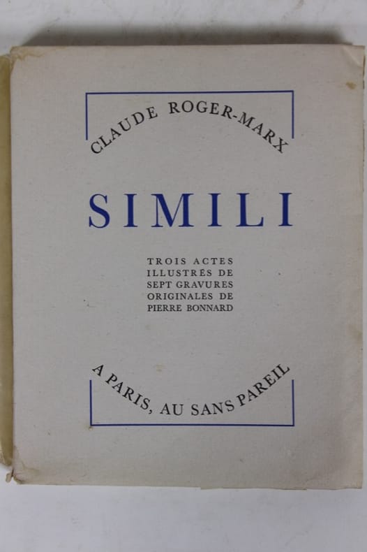 Paris Au Sans Pareil 1930 In-8, broché, couverture imprimée.Edition illustrée d'un frontispice et de 6 gravures originales hors texte de Pierre Bonnard. Tirage limité à 310 exemplaires. Un des 30 exemplaires hors commerce numérotés sur vergé d'Arches, comportant une double suite des gravures sur japon et sur arches. Exemplaire non coupé.