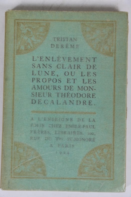 Paris A l'enseigne de la folie chez Emile-Paul 1924 1 vol. broché in-12, broché, couverture rempliée vert d'eau illustrée de 4 motifs dorés, 143 pp. Edition originale ornée en frontispice d'un beau portrait de l'auteur gravé sur cuivre par Pascin. Un des exemplaires numérotés sur vergé à la forme de Blanchet-Kleber. Dos très légèrement passé, sinon bon exemplaire de ce joli livre.