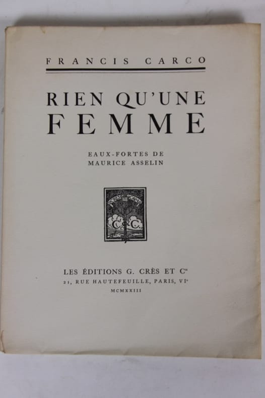 Paris, G. Crès 1923 Grand in-8 broché, couv. impr. rempliée, 4- 99 -6 pp. Un frontispice et 6 eaux-fortes originales de Maurice Asselin dans le texte.
