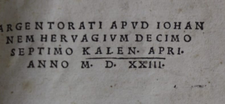 Très rare édition strasbourgeoise par Herwagen l’Ancien (1497-1558), suivant l’édition de Johann Froben à Bâle, la même année, de cette nouvelle traduction sur la version grecque qui fit l’effet d’une bombe dans une Europe chrétienne profondément attachée à la Vulgate. Bon état d’occasion