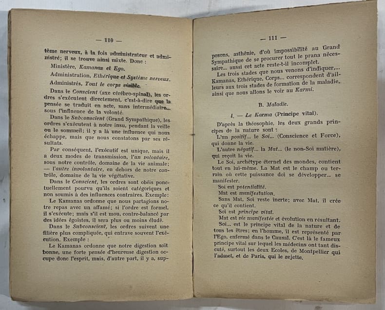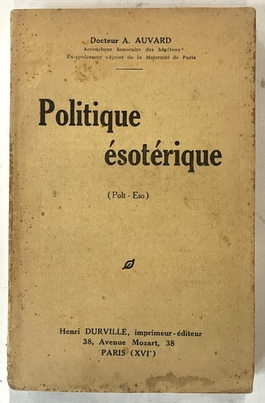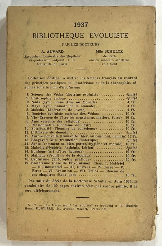 Paris, Henri Durville, coll. « Bibliothèque évoluiste » 1937 In-12 19 x 12 cm. Broché, couverture beige, titre en noir sur le dos et le premier plat, 171 pp., table. Couverture ternie avec manque en pied de dos, intérieur correct.