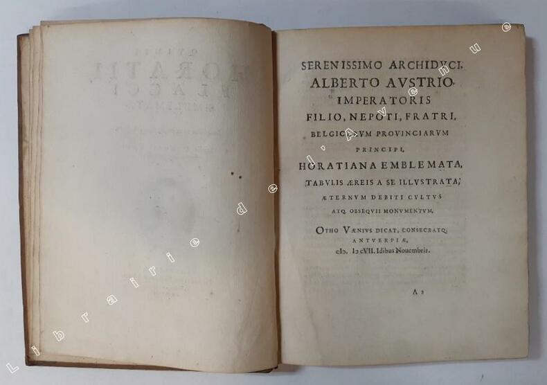 Texte en latin. En 1607 paraissent à Anvers, chez Henri Verdussen, les Quinti Horati Flacci Emblemata du Bon état d’occasion