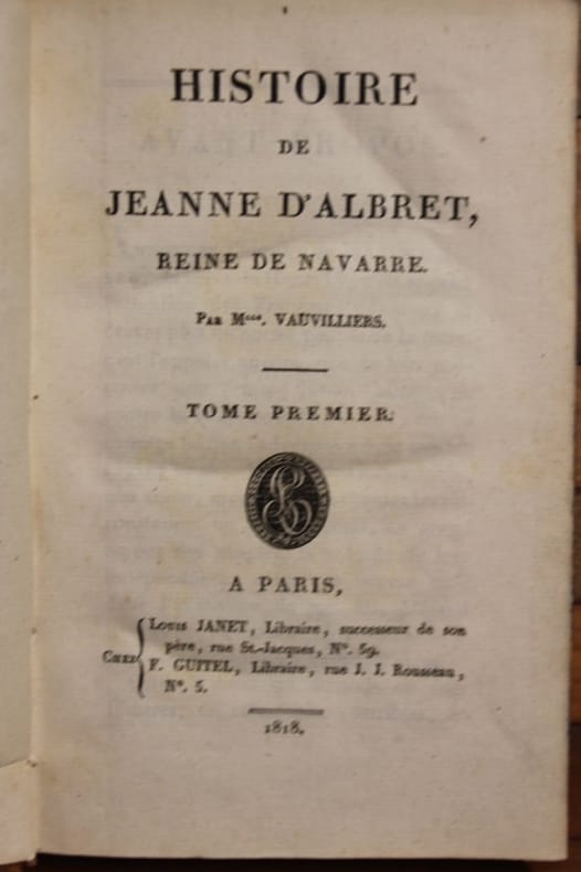 Paris, Louis Janet, Libraire, F. Guitel, Libraire 1818 3 volumes. In-8 21 x 12,5 cm. Reliures de l’époque basane havane marbrée, dos lisses ornés de petits fers encadrés de roulettes dorées, LXX-362-450-489 pp., portrait gravé de Jeanne d’Albret en frontispice, table indicative des sources, index des noms, table. Coiffes avec accrocs, coins légèrement émoussés et frottés, petites épidermures, intérieur frais.