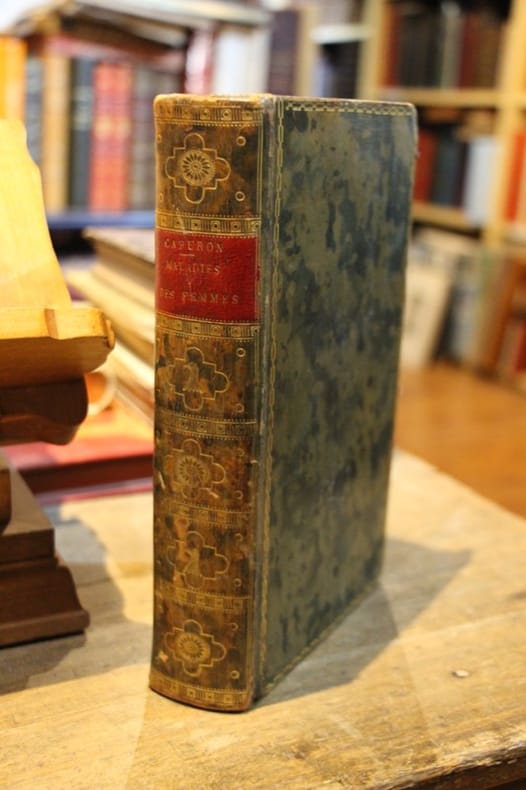 Edition en partie originale, sous élégante reliure du temps de demi-maroquin signée de Perreau. ''Nous traitons non seulement ici des accidents qui peuvent troubler la grossesse et les suites naturelles des couches, mais encore des lésions de la menstruation et de l'allaitement. Pour ne rien omettre d'important sur la pathologie des femmes, nous les considérons depuis la puberté, jusqu'à l'âge où elles cessent d'être fécondes. Nous avons réduit chacune de leurs maladies en un tableau, où nous avons encadré tout ce qui concerne les causes, symptômes diagnostics, pronostics et traitements''. Table : Des maladies relatives à la menstruation - A la génération - A la lactation. Ramsden, French bookbinders, p. 152 - Montfalcon, Précis de bibliographie médicale, p. 116 (citant la présente édition) - Quérard II, La France littéraire, p. 47 - Brunet VI, Manuel du libraire et de l'amateur de livres, 7599. Infimes marques d'usage affectant la reliure. Rousseurs dans le texte (davantage marquées sur plusieurs feuillets). Nonobstant, belle condition.