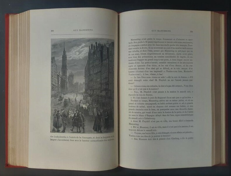 Paris, Firmin-Didot, coll. « Walter Scott illustré » 1882 In-4 27 x 17,5 cm. Cartonnage éditeur percaline rouge, premier orné d’une plaque signée A. Souze, tranches dorées, 591 pp., 194 gravures dont 11 hors texte, notes, table des gravures. Bel exemplaire.