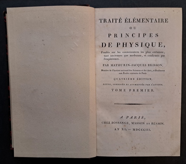 Paris, chez Bossange, Masson et Besson, An XI 1803 3 volumes. In-8 20,5 x 12 cm. Bradels postérieurs année 1950 toile motif léopard noir et rouge, pièces de titre basane havane, CIV-352-419-476 pp., 46 planches repliées, table des matières. Exemplaire en bon état, bien complet de ses planches. Petits accrocs en tête et en pied de dos, intérieur très frais.
