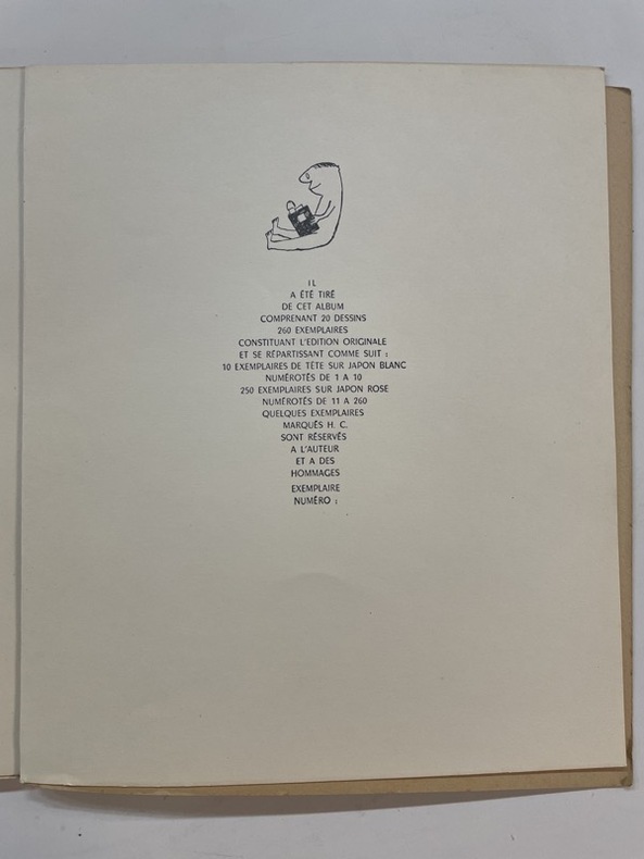 Sans éditeur 1953 Edition originale. Tirage à 260 exemplaires. Exemplaire sans justification de tirage. Petit In-4 broché couverture grise illustrée d’une petite vignette contrecollée sur la 1ère et la 4ème de couverture. 24,9 cm sur 21. 20 dessins en noir et blanc pleine page. Non paginé. Pages déliées. Couverture et dos avec frottement sinon bon état.