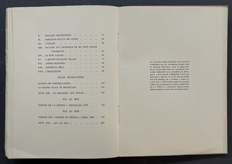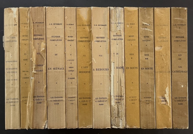 Comprend : Vol. I, Le Drageoir aux épices ; Sac au dos - II, Marthe, histoire d’une fille ; émile Zola et l’Assommoir - III, Les soeurs Vatard - IV, En ménage - V, à Vau-l’eau ; Pierrot comique ; Un Dilemme - VI, L’Art moderne - VII, à Rebours - IX, En Rade - XIII, En Route (2 volumes) - XIV, La Cathédrale (2 volumes). Bon état d’occasion