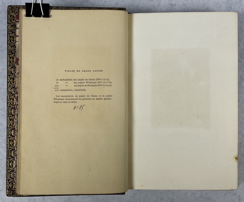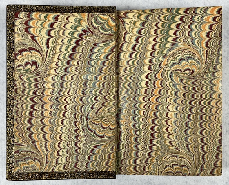 Paris, Jouaust 1875 In-8 20,5 x 12,5 cm. Reliure plein maroquin brun, dos à nerfs, tranches dorées, contreplats encadrés de roulette dorée, couvertures conservées, XLV-241 pp., notes, table. On a ajouté à cette édition, 2 portraits gravés par W. Ridley d’après Dance, 6 gravures de Levillain, 6 de Hottard, 1 de Vincelliet soit 15 gravures ajoutées à celles de l’ouvrage, 1 portrait de Deveria gravé par Larcher, 6 vignettes de Salmon. En tout 22 vignettes. Tirage en grand papier 200 exemplaires numérotés. Celui-ci, N 85//170 sur papier de Hollande N 31 à 200.