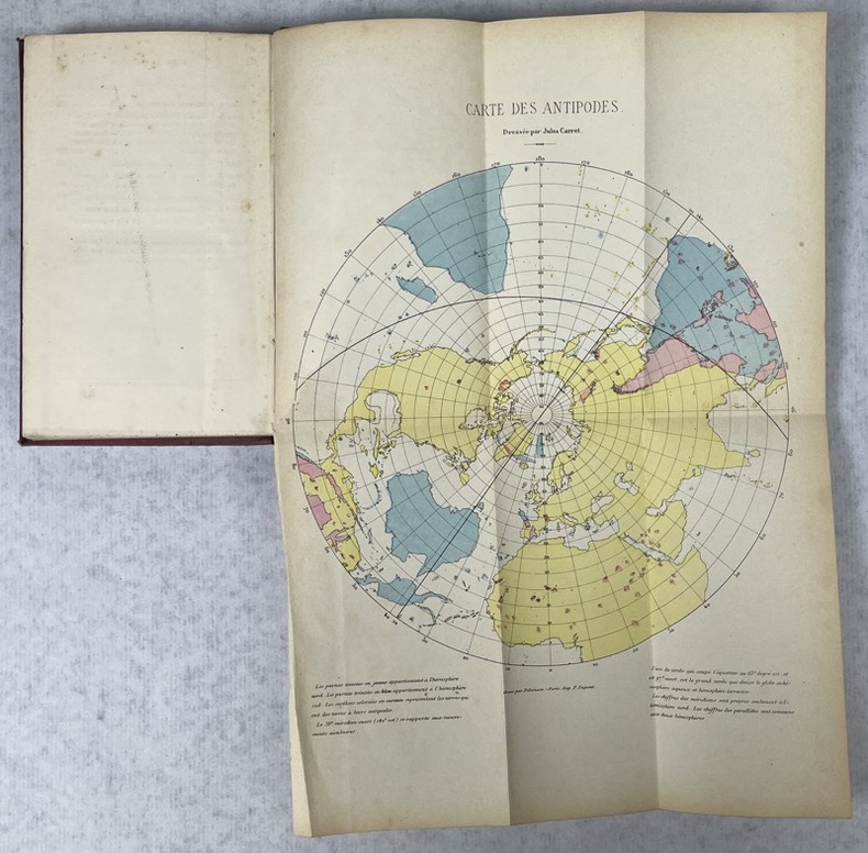 F. Savy, N. Baudet 1877 In-12 18 x 11, cm. Reliure éditeur toile rouge, auteur & titre dorés sur le dos et le premier plat, 281 pp., 5 figures dans et hors texte, table des matières, notes, 1 carte en couleurs des antipodes repliée in fine. Dos passé.