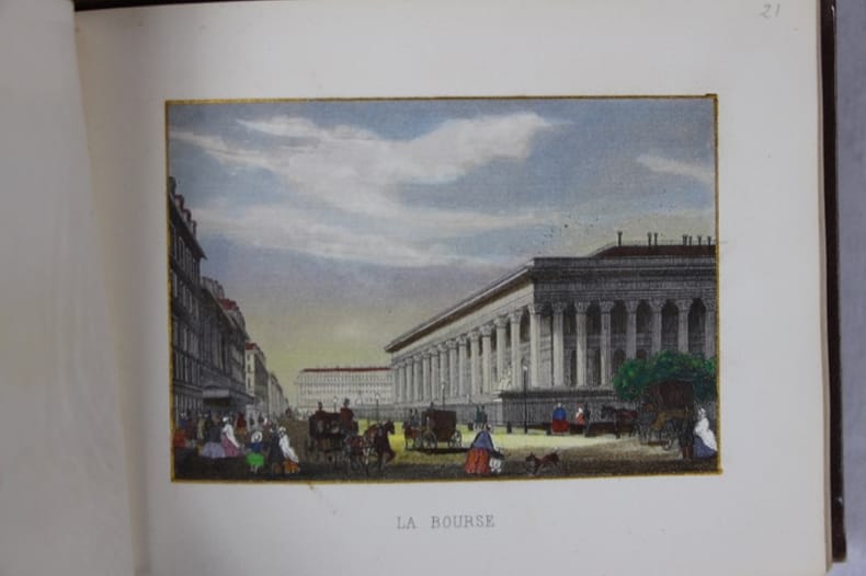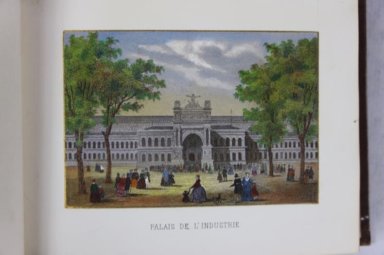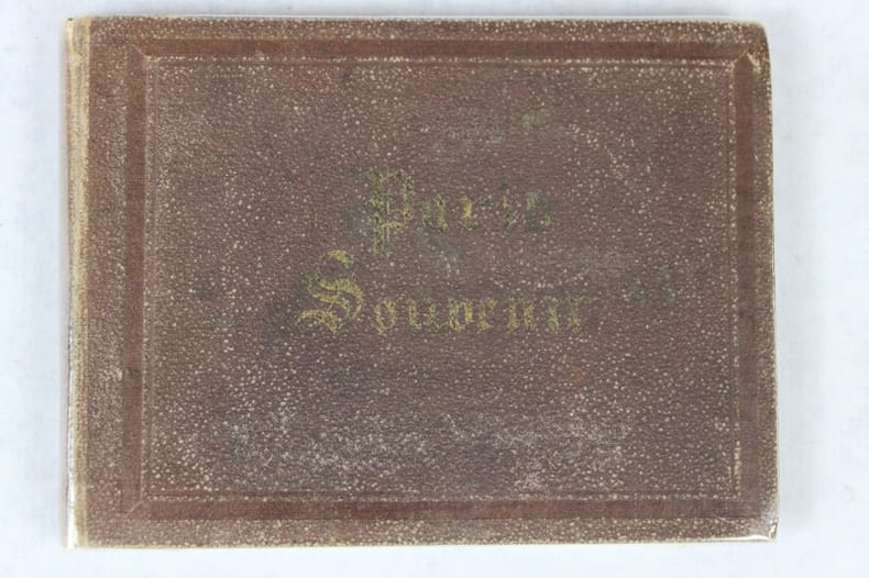 S.l.n.n. 1860 In-16 oblong, bradel percaline brune de l’éditeur, titre doré sur le premier plat. 32 vues gravées par Chamoüin en coloris de l’époque, encadrées chacune d’un filet doré. Timbre sec du marchand d’estampes Henri Guérard au bas du titre. Quelques planches remontées, gardes renouvelées, minimes réparations en marge de la pl. 9.