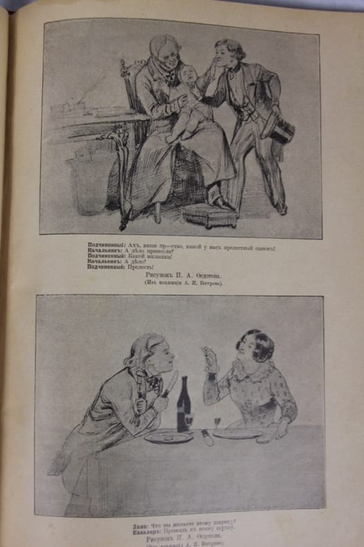Slnd 1900 In-4, bradel demi-toile muette rouge à coins, 34 planches de reproductions de dessins légendés, un à deux sujets par planche. Légendes en russe..