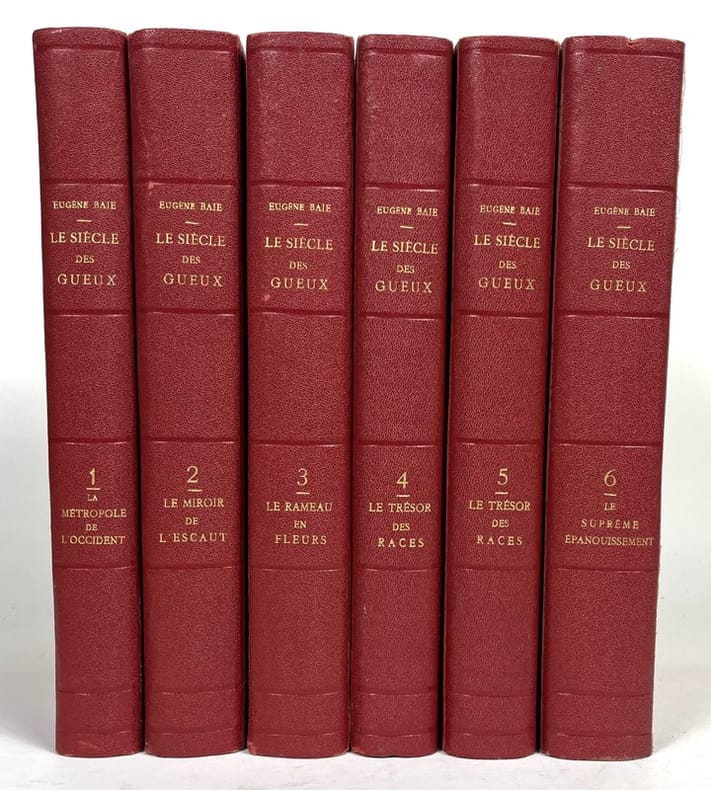 Comprend : 1. La Métropole de l’Occident (Réimpression 1957. édition définitive) - 2. Le Miroir de l’Escaut (1938. édition définitive) - 3. Le Rameau en Fleurs (1948. édition définitive) - 4. Le résor des Races. I. Maîtrises d’Art (1951. édition définitive) - 5. Le Trésor des Races. II. Maîtrises d’Art et les Deux Verbes (1955. édition définitive) - 6. Le Suprême épaouissement. Précédé des Maîtrises d’Art III (suite et fin). (1956. édition définitive). Bon état d’occasion