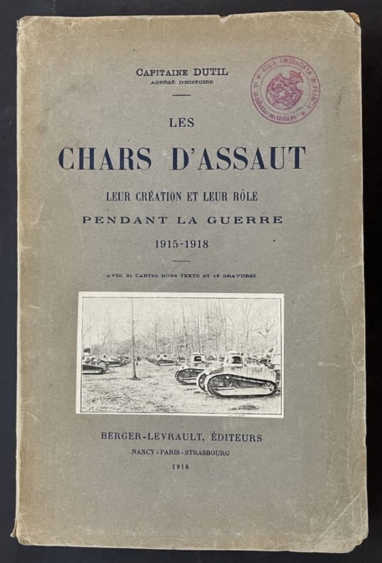 Paris, Nancy, Strasbourg, Berger-Levrault, 1919 in-8, VIII-287 pp., 21 cartes dépl., ill. in-t., demi-basane fauve, dos à nerfs (reliure de l'époque). Dos frotté. Manque à la partie supérieure du dos. Petite déchirure sans manque à la page de titre et sur les deux premières pages. Cachets annulés.