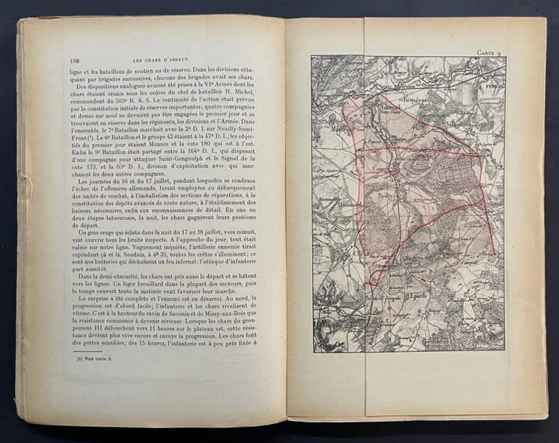 Nacy, Paris, Strasbourg, Berger-Levrault 1919 In-4 25 x 16,5 cm. Broché couverture grise, auteur & titre en bleu-marine sur le dos et le premier plat de couverture orné d’ue vignette contrecollée, VIII-287 pp. 21 cartes, 16 gravures, table des cartes et croquis, table des gravures, table des matières.