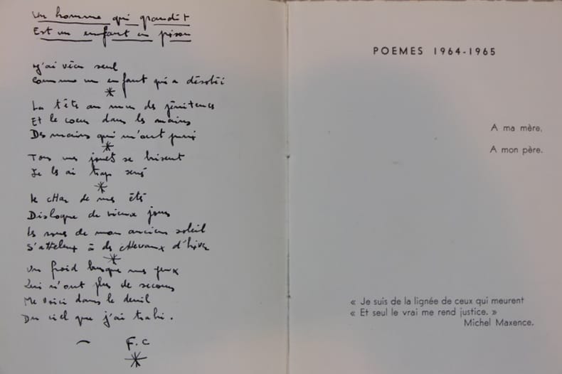 Un des 50 ex. num. sur offset blanc, unique exemplaire illustré à la main par Claude Vedel & Francis Coste avec un bel envoi et un poème autographe de l’auteur. Très bon état d’occasion