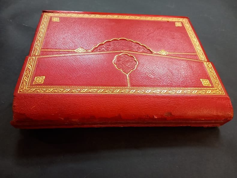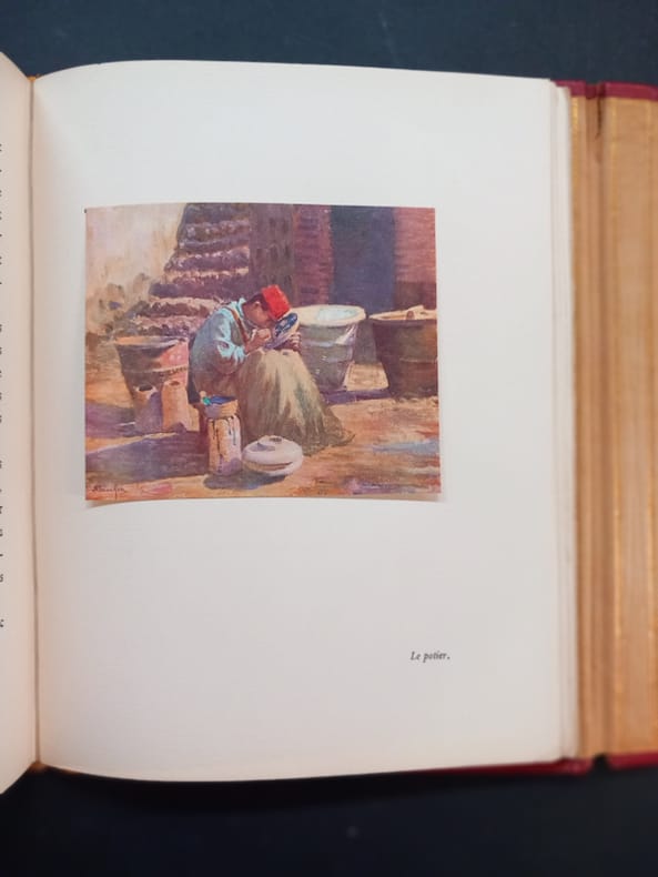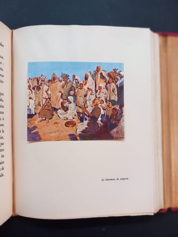Paris, Henri Laurens 1951 In-8 24,5 x 19 cm. Reliure éditeur à l’orientale basane rouge signée Boutique d’Art La Gazelle, dos muet restauré amateur, couvertures conservées, 171 pp., bandeaux et culs-de-lampe, 30 reproductions contrecollées, table des matières. Mors fragilisés. Enrichi d’un envoi.