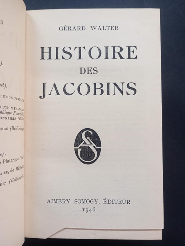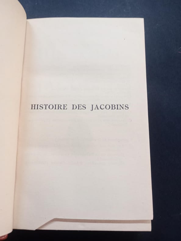 Datée du 14 mai de l'an IV [de la liberté = 1792]. Une des impressions des presses de Dupont, rue de la Loi, tenues avec son fils Éleuthère.Il s'agit d'une critique du club des Jacobins qui fonctionnerait comme une seconde chambre des députés, pis, comme la source de tout pouvoir ; la description qui en est faite est à la fois prémonitoire (on est seulement en 1792) et exemplaire sur le fonctionnement d'une société totalitaire : "Si les français veulent donc n'être que jacobins ; s'il leur convient de céder leur souveraineté aux souscripteurs d'un club ; s'ils veulent décider qu'il y aura une noblesse clubiste, et que nul ne pourra parvenir à aucun emploi, sans avoir fait devant le club, les preuve de cette noblesse , s'ils veulent renoncer à leur assemblée nationale, à leurs administrations de département et de district, à leurs municipalités, à leurs tribunaux ; s'ils préfèrent à tous ces établissemens une société despotique, et sept ou cents clubs subordonnés et affiliés ; s'il leur suffit, pour code, des journaux de ces clubs et de leurs coryphées, et pour justice, des exécutions spontanées et sanguinaires, qu'on a tant de fois nommées la justice du peuple : tout va bien, le royaume est parfaitement organisé, et le ministère est excellent.". Monglond II, 519. Schelle, p. 419. - - VENTE PAR CORRESPONDANCE UNIQUEMENT