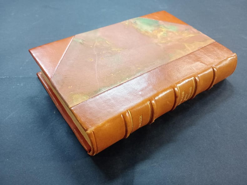 Reliure d'époque demi-basane fauve. Dos lisses avec pièce de titre de maroquin roge. Trois tranches mouchetées. Intérieur très propre, sans rousseur.