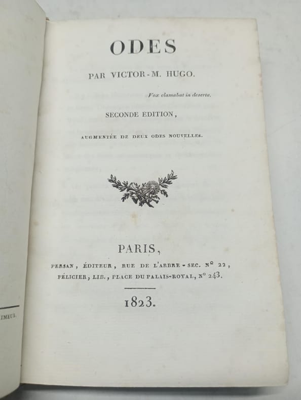 Persan, Editeur - Pélicier, Libraire Paris 1823 In-12 ( 175 X 110 mm ) de 122-1 pages, demi basane fauve, dos lisse orné de filets dorés. Seconde édition en partie originale augmentée d'une préface et de deux odes nouvelles. Rousseurs. Le tirage serait de 400 exemplaires seulement.