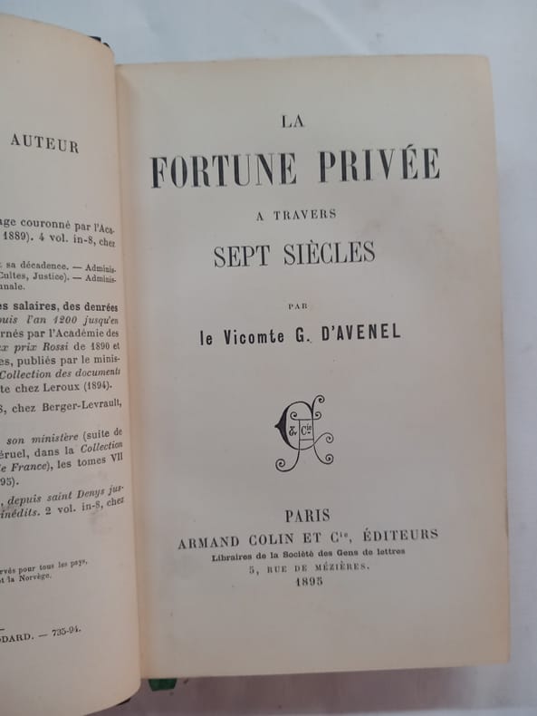 Le pouvoir de l'argent; les monnaies et les métaux précieux, le taux de l'intérêt et les valeurs mobilières, le crédit et le commerce de l'argent, la ruine des anciens capitalistes, la propriété des personnes, le servage, la terre au paysan, le cens, les droits de maitres primitifs, les fermages modernes, les transformations du sol rural, valeur des terres labourables (1200-1600), prix et loyers des maisons au moyen âge et jusqu'en 1800 Très bon état d’occasion