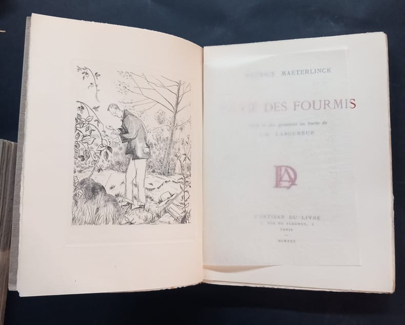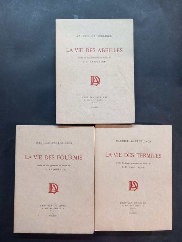 L’artisan du livre 1930 3 volumes. In-12 broché sous couvertures rempliées, sous étui, 19,3 cm sur 14. 313, 234, 184 pages. Frontispices, vignettes, illustrations en noir et blanc hors texte de gravures au burin de J-E. Laboureur. Bon état d’occasion.