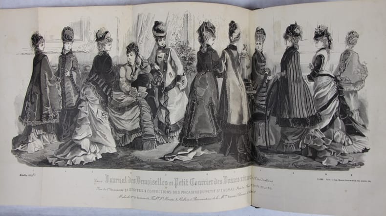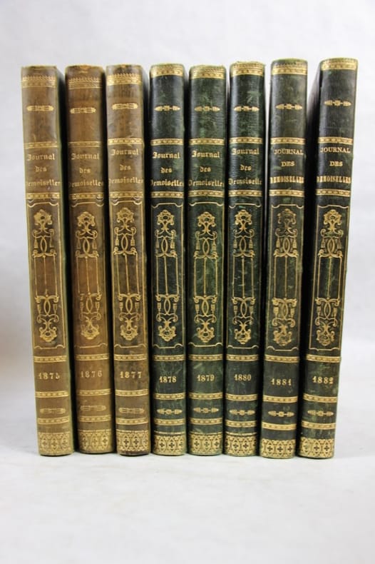 P., Bureau du journal 1882 7 volumes petit in-4, demi-basane aubergine, dos lisse orné en long, texte sur deux colonnes, près de 380 pp. par volume, 123 planches hors-texte en couleurs 11 pour 1875, 13 pour 1876, 16 pour les volumes suivants, 24 planches hors-texte en noir 7 dont 2 repliées pour 1875 ; 5 dont 2 repliées pour 1876 ; 2 repliées poiur les suivantes, partitions. Belle ensemble uniforme et de grande fraicheur.