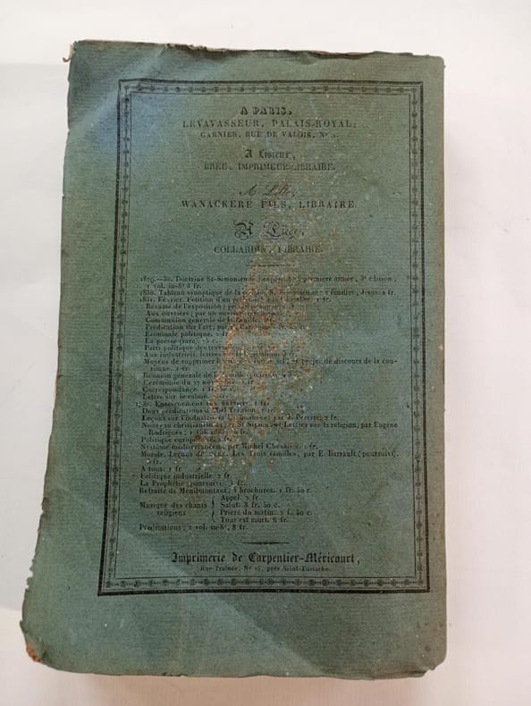 A la librairie Saint-Simonienne, chez Johanneau 1832 In-8 broché 21,3 cm sur 13,3. 406 pages. Édition originale. Couverture défraîchie et salie, rousseurs éparses. État correct d’occasion.