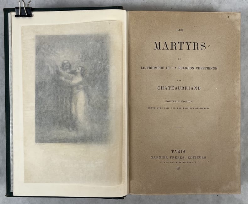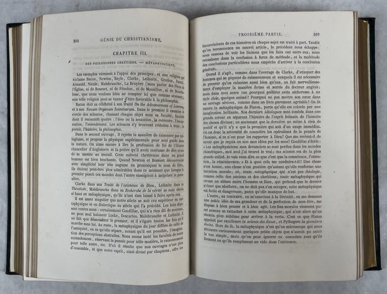 Garnier frères 1890 in8. 1890. Relié. Génie du Christianisme et défense du génie du Chrisitanisme avec notes et éclaircissements par Châteaubriand suivis des extraits critiques par M. de Fontanes - nouvelle édition revue avec soin sur les éditions originales - vignettes d'après les dessins originaux de G. Staal gravées par Fd Delannoy