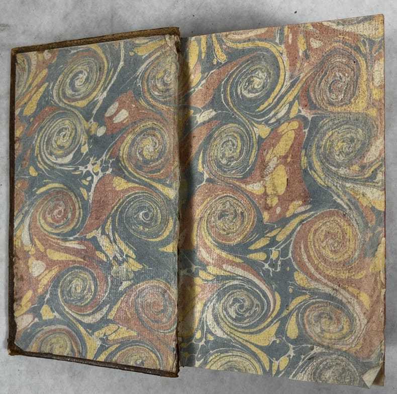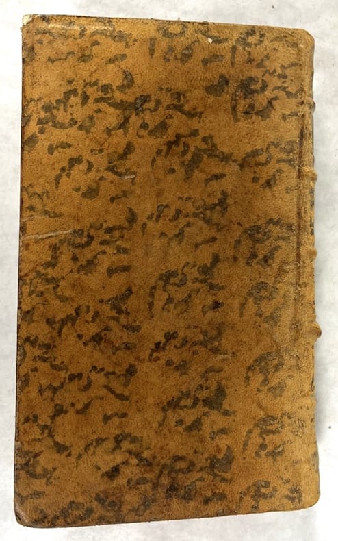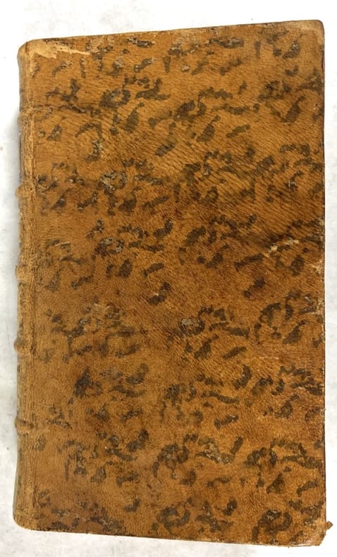 à Paris, chez Prault père, Quai de Gêvres 1769 In-16 16,5 x 9,5 cm. Reliure de l’époque veau fauve marbré, dos à nerfs encadrés de fers dorés, pièce de titre maroquin grenat, [8]-244-XVI-414 pp., table. Tampon humide Bibliothèque de Leugny sur la page de titre.