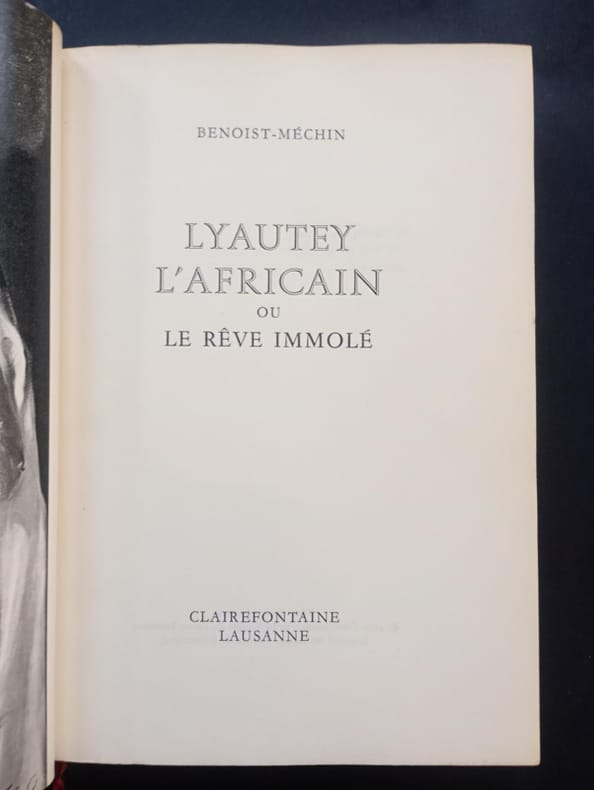 BROCHE CORRECT. EXEMPLAIRE AVEC ROUSSEURS. COUVERTURE USAGEE ET JAUNISSANTE PELLICULAGE FREAGILISEE. Couverture souple. 500 gr. PHOTOS SUR DEMANDE. Lyautey l'africain ou le rêve immolé , Jacques Benoist-Méchin. Clairefontaine. Broché 1966.