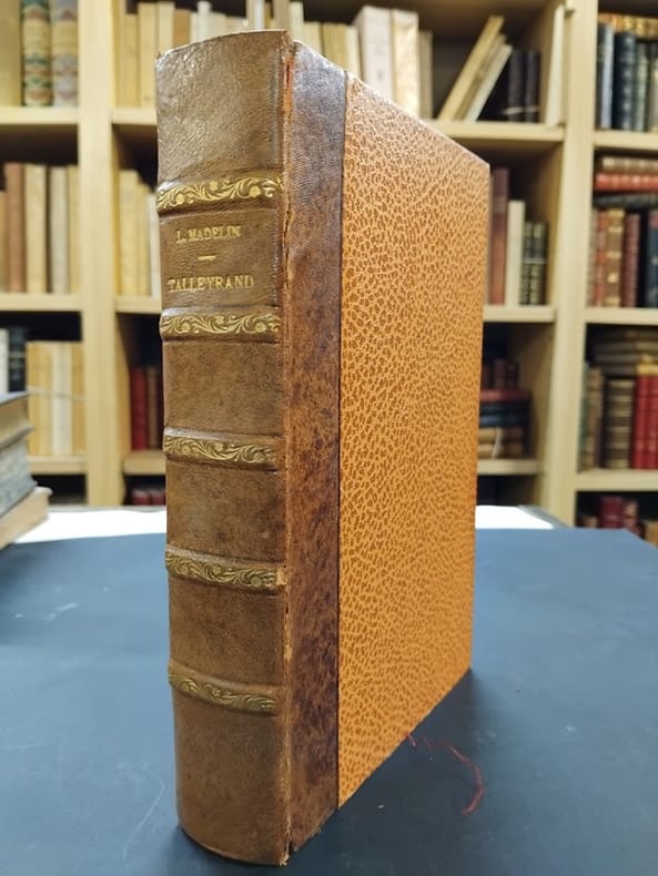 Paris Jean de Bonnot 1967 in 8 (21x14,5) 5 volumes reliures plein cuir vert ornées de l'éditeur, plats ornés d'un double encadrement de guilandes dorées avec un décor central de 3 fers dorés au lion, têtes dorées, [5] 459 pages, 560 pages [3], 469 pages [2], 499 pages [2], et 512 pages et table non chiffrée, avec des illustrations hors-texte en noir et blanc. Texte conforme au manuscrit original contenant les notes de Monsieur Adolphe Fourier de Bacourt légataire des manuscrits de l'auteur. On joint un volume: LETTRES DE TALLEYRAND A NAPOLÉON (même éditeur, même date, même reliure). Charles-Maurice de Talleyrand-Périgord, dit prince de Talleyrand, Paris 1754-1838, homme d'Etat et diplomate français. Ensemble 6 volumes. Très bel exemplaire ( Photographies sur demande / We can send pictures of this book on simple request )