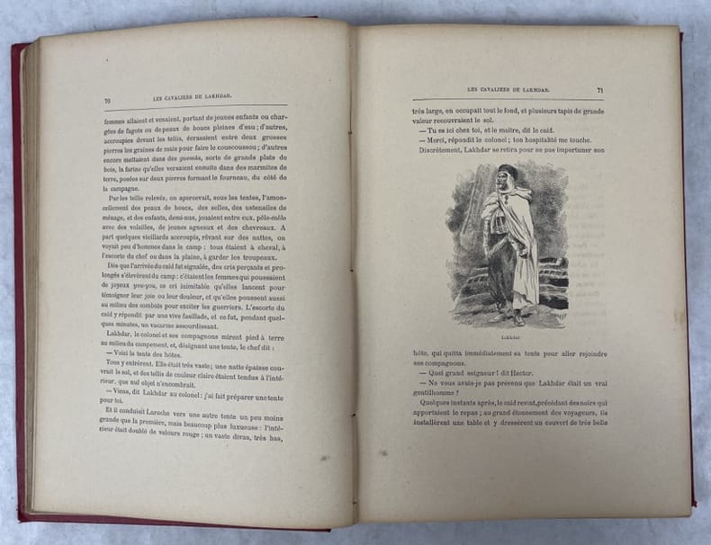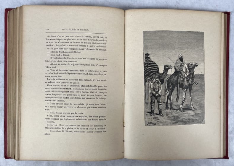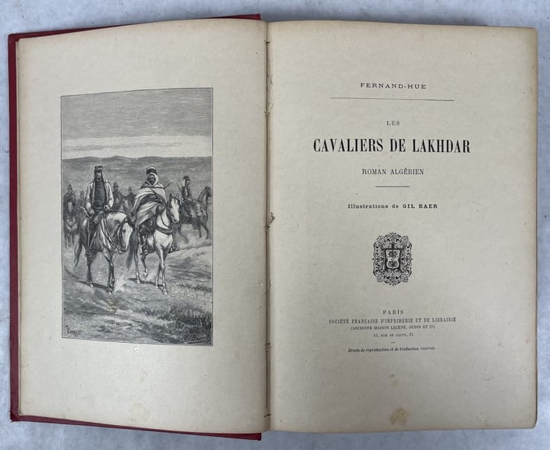 Paris, Société française d'imprimerie et de librairie (ancienne maison Lecène, Oudin et Cie) 1890 In-4 29,5 x 19,5 cm. Cartonnage éditeur percaline rouge signé par Paul Souze,auteur & titre argent sur le dos et le premierplat de couverture, celui-ci orné d’une plaque polychrome encadrée d'un double filet argent et d’un filet en pointillés à l’identique, tranches dorées, 318 pp., illustré de 46 planches par Gil Baer, table des matières, table des gravures. Gouttière irrégulière.