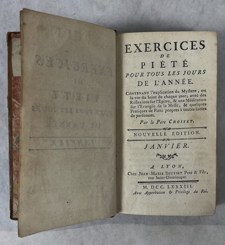 à Lyon, chez Jean-Marie Bruyset Père & Fils, rue Saint-Dominique, M. DCC. LXXXIII 1783 In-16 17 x 9,5 cm. Reliure de l’époque veau havane, dos à nerfs encadrés de fers dorés, pièce de titre maroquin grenat, IX-[3]-584 pp., table. Ex-libris autographe Eléonore Vétillard.